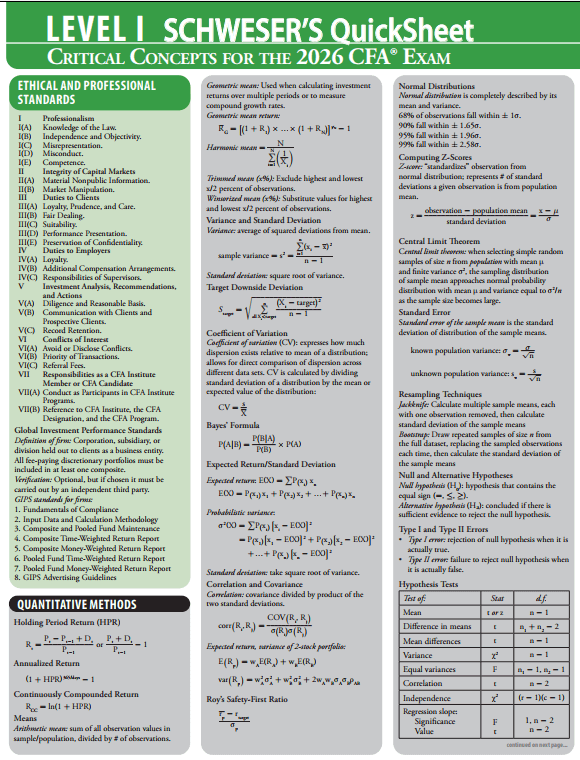 For sale: 2026 CFA Level 1 Schweser Notes and Quicksheet